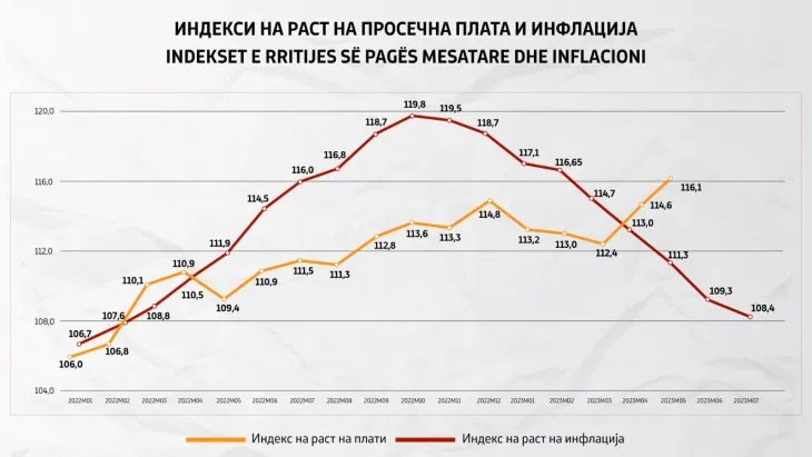 – Овие бројки се во согласност и со владините проекции со кои се предвидува просечната инфлација за 2023 да изнесува 8,9 проценти. Од друга страна оваа Влада посветува големо внимание и на креирање на позитивна бизнис клима, каде компаниите ќе бидат мотивирани да исплаќаат компетитивни плати чиј раст на годишно ниво ќе биде далеку над растот на трошоците на живот, наведува Битиќи.